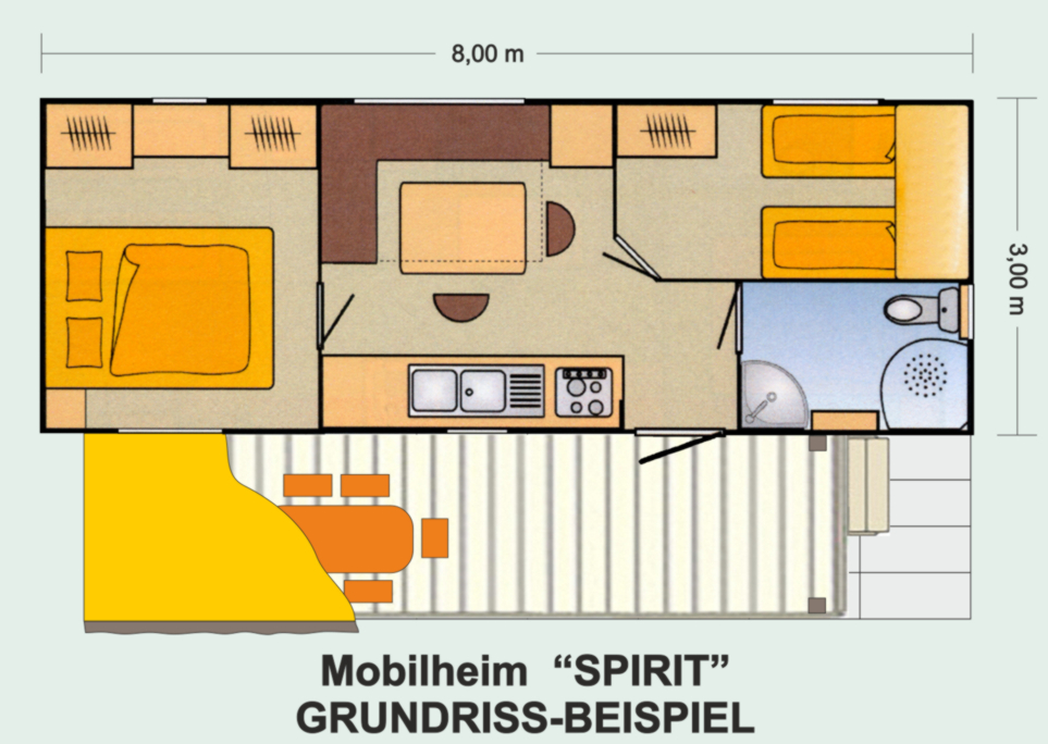 MH SPIRIT mit Klimaanlage/Heizung, TV, Dusche, WC, überdachter Holzterrasse |
